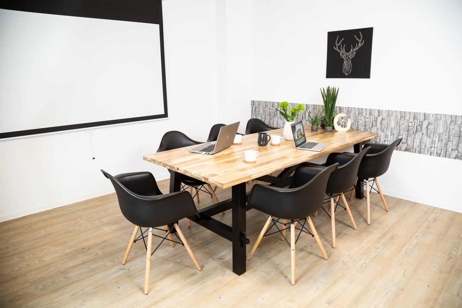 Die sonst für 7 Personen gemütliche Runde kann mit wenigen Handgriffen für 10 Teilnehmer erweitert werden. Die ruhige Lage ist sehr gut geeignet für Meetings, Workshops oder auch Kundengespräche.